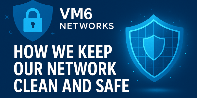 At VM6, we’re committed to maintaining a reliable, high-performance network for all our customers. To achieve this, we’ve implemented intelligent monitoring systems that protect our infrastructure while respecting your privacy and legitimate use cases.