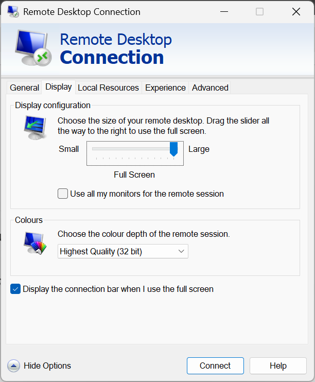 If you’re connecting to your Windows VPS using Remote Desktop (RDP), you may want to adjust the display resolution, enable multiple monitors, or switch to full screen mode. This guide will show you how to change display settings in the Remote Desktop Client.