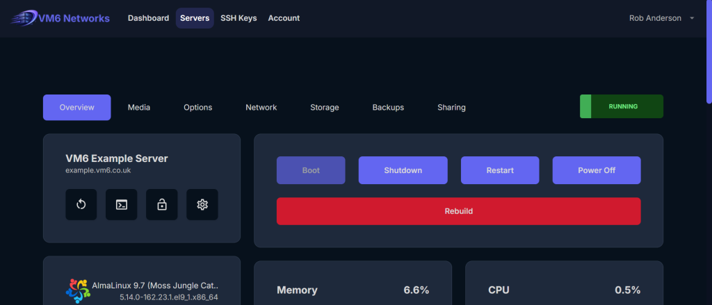 At the top of the VirtFusion control panel, you will see several tabs such as: