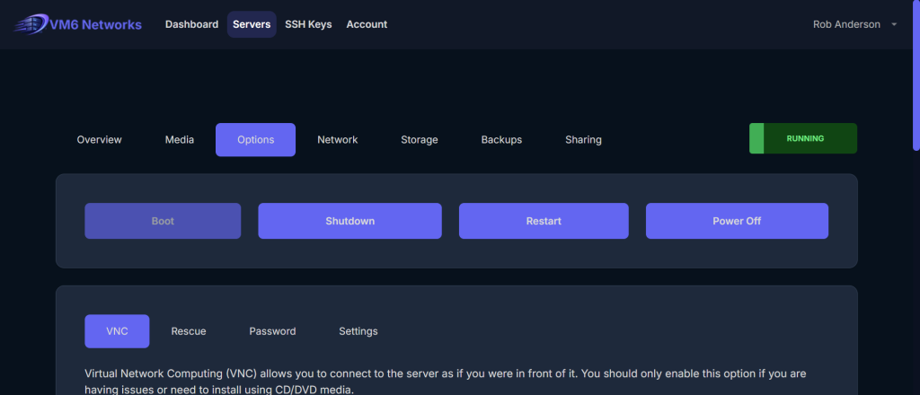 VirtFusion makes it easy to access your VPS console using the built-in VNC feature. This provides a powerful recovery tool if your server becomes inaccessible via SSH or Remote Desktop.