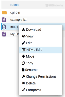 4. Right-click on the file. Then click on Edit or HTML Edit in the Context Menu.