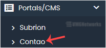 4. On the left side, type Contao in the search box, then click the Contao link that appears.