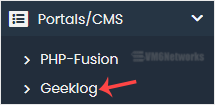 4. On the left side, type Geeklog in the search box, then click the Geeklog link that appears.